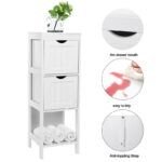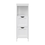 This bathroom cabinet offers a classic solution for your storage needs. Constructed from engineered wood, it features a shelf and two drawers for ample storage that’s just right for extra towels, cleaning supplies, and bathroom essentials. We love that the cabinet’s design includes a wall anchor for added safety, so it’s a great fit in busy bathrooms. Its classic style and clean lines make it a versatile addition anywhere. Ideal for smaller spaces, it provides essential storage without overwhelming the room.